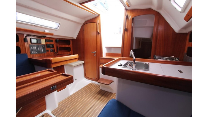 A spacious and comfortable polyester cabin sailing yacht with excellent sailing performance. Its shallow depth makes it perfectly suited for the Frisian lakes. The Dufour 30 is equipped with a mainsail with lazy jacks and fast reefing system and a roller furling genoa, both controlled from the cockpit. In 2014, this ship was also fitted with a closed forepeak.